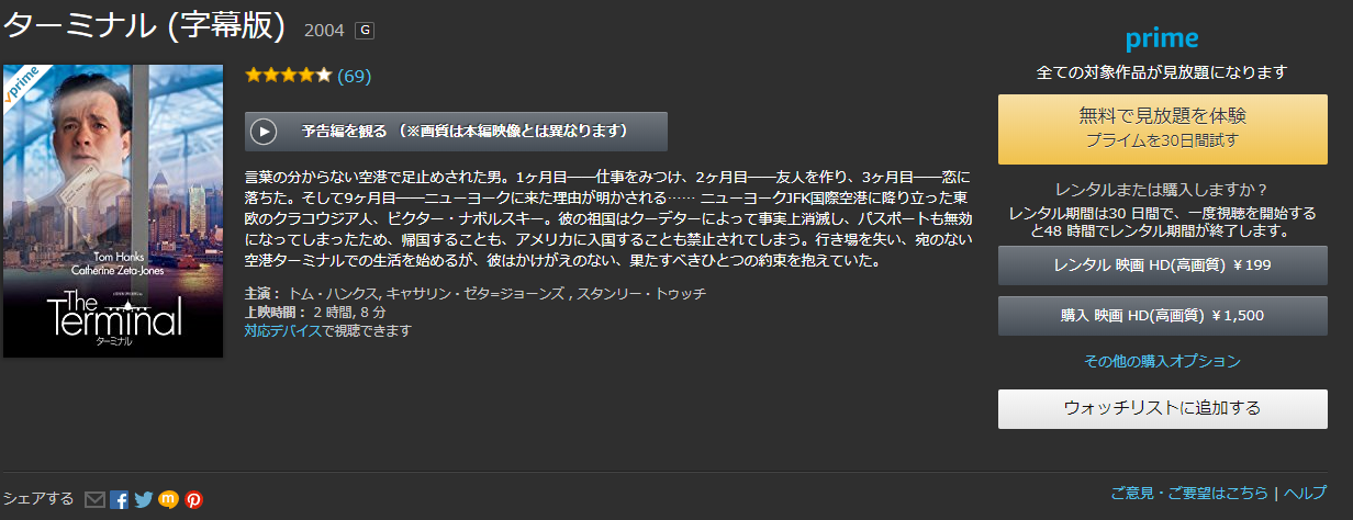Amazonのプライム会員で観る事が出来る映画、会員じゃなくても金払えば観られるんすね。
